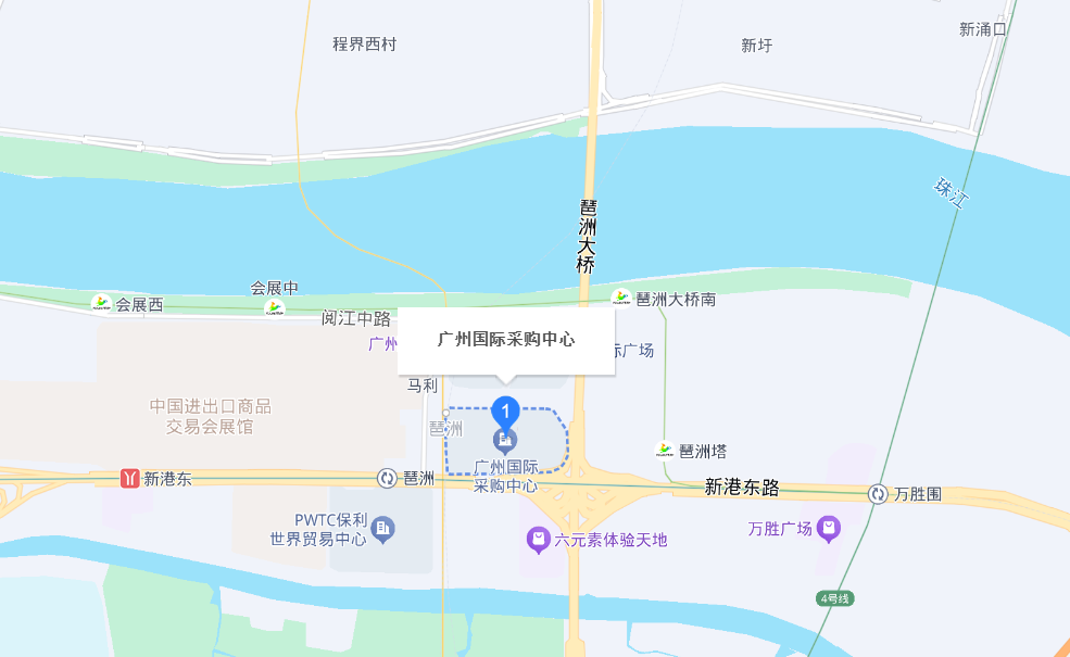 廣州國(guó)際采購(gòu)中心位于廣州市海珠區(qū)琶洲大道東2-8號(hào),地處琶洲會(huì)展商圈核心位置,周邊交通便捷,臨近地鐵8號(hào)線、11號(hào)線琶洲站,周邊有華南快速干線、新港東路等主干道;同時(shí),其緊鄰廣州國(guó)際會(huì)展中心(廣交會(huì)館)、保利世貿(mào)展館等展館,周邊還有香格里拉大酒店等五星級(jí)酒店及地鐵沿線的大型商場(chǎng)、影院等商業(yè)娛樂設(shè)施。